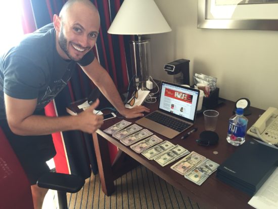 Hahaha…..Noah in his room prepping for his keynote speech.  He gave away $8,000 in cash + lottery tickets during the speech!