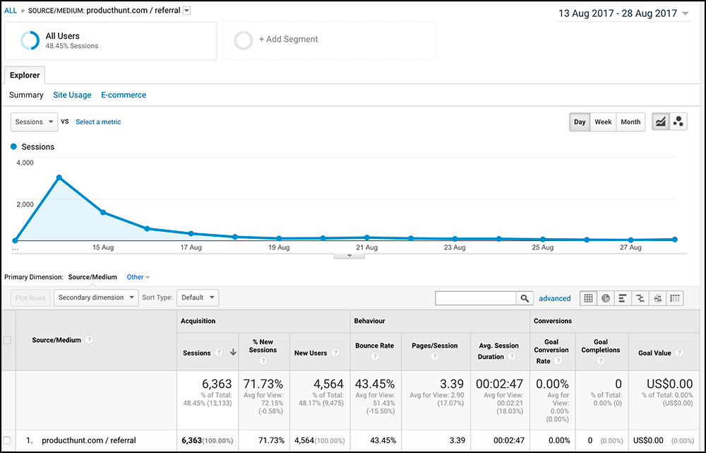 Product Hunt Launch Traffic Stats August 30, 2017 by Neville We launched SwipeFile.io on August 14th on Product Hunt, and here’s the traffic stats from each day. Here’s the raw stats:
