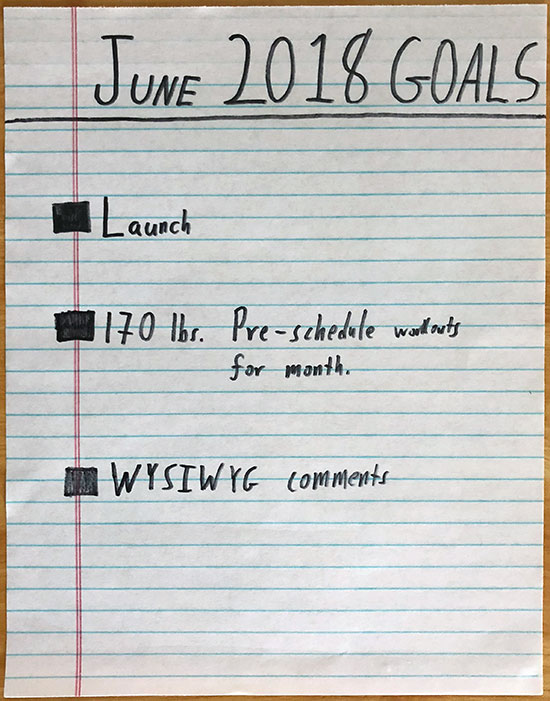 June 2018 Goals June 1, 2018 by Neville Here are the goals for June 2018: This month I’ll also be going to HustleCon in SF, and staying in SF for all of July and August (Austin is way too hot right now)!