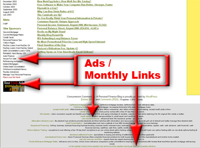 Taking a look at some personal finance websites, I noticed everyone has all sorts of cash-generating items on their site, which are relatively un-intrusive. I’m just curious of the average total amount everyone makes from their sites. For example, I was looking at Consumersim Commentary and took a good look around his site to see where cash comes from.