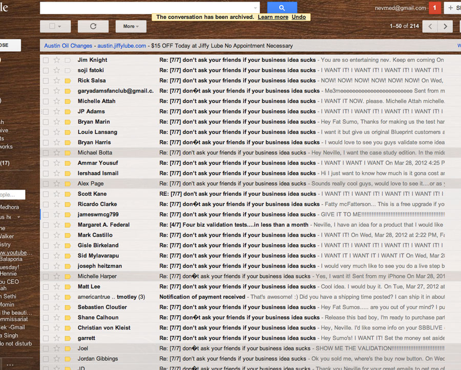 The email went out, and suddenly, I had page-after-page-after-page-after-page of this in my gmail: