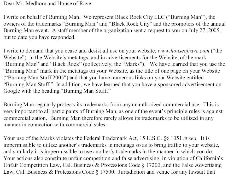 They demand I remove the words “Burning Man” and “Black Rock” from House Of Rave.