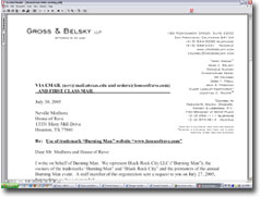 While I found a couple of “maybe” loopholes here and there, they have me beat. I’ve got to pick my battles wisely, and there isn’t enough money at stake here to fight back. So I no longer have words “Burning Man” or “Black Rock City” mentioned anywhere on House Of Rave .com.
