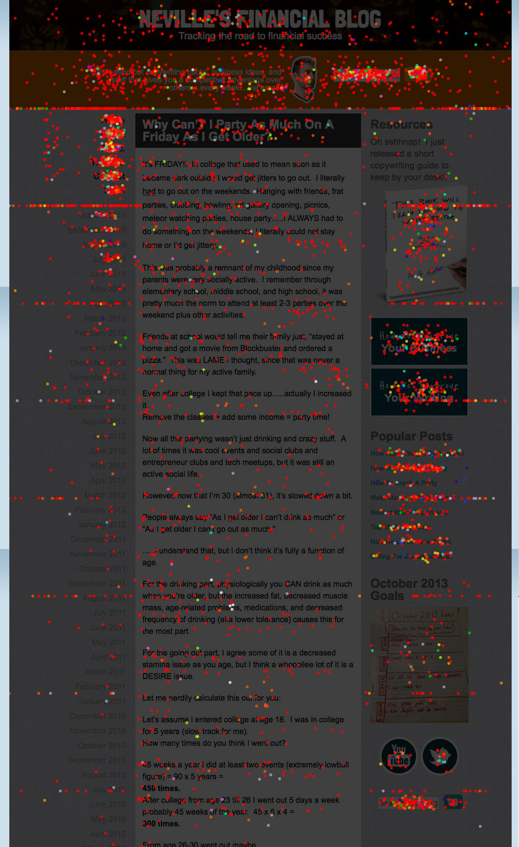 This is a CONFETTI overlay of NevBlog.com from my CrazyEgg statistics: