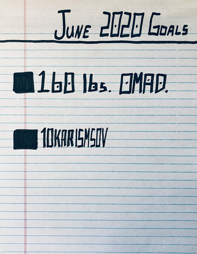 #1.) Hit 160 lbs by eating OMAD (One Meal A Day). I lost 8+ lbs last month doing this. It suits my life best. No food all day, then around 8pm or 9pm (or whenever) I eat whatever the heck I want.