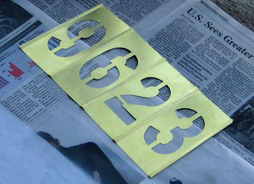 The stencils I bought were the bendable cardboard kind, which are good for when the curb you’re painting is curved. However I wanted the inter-locking brass stencils for flat curbs. I also wanted these because they inter-lock and stay in place, rather than having to tape each number together (see how they snap together?):