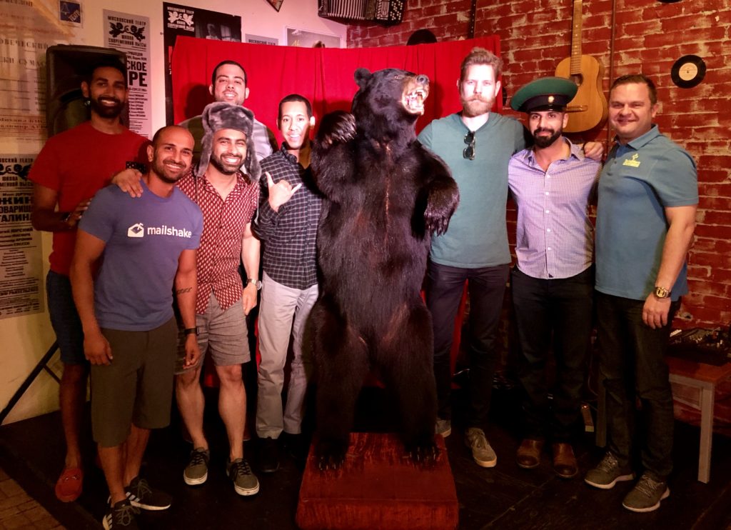 Some friends got together for a fun dinner at Russian House……this bear is our new friend 😂