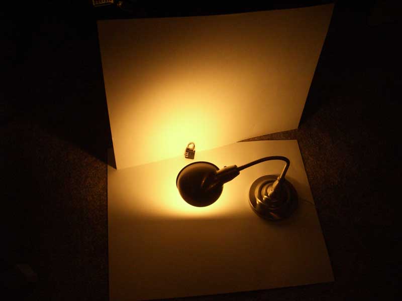 Depending on what you are photographing, setup the poster board(s) accordingly. The goal is to take a picture with a clean, white backdrop without lines or interruption. Blemishes or lines can always be removed by Photoshop later.