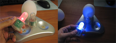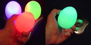 I eventually ordered some Oggz to see why so many people of different backgrounds kept ordering this product, and then I finally saw why people like them….they’re just neat. They slowly morph into different colors as you watch them. They don’t JUMP to different colors…they gently move through the spectrum of light creating a mesmerizing or soothing effect. They’re quite a nice nightlight, play toy or decoration. Lots of spa’s and masseuses would order Oggz to create a nice ambiance around their offices. They have a sleek looking and compact charging base, and when you remove them from the base they stay lit for 24 hours or more without charging.