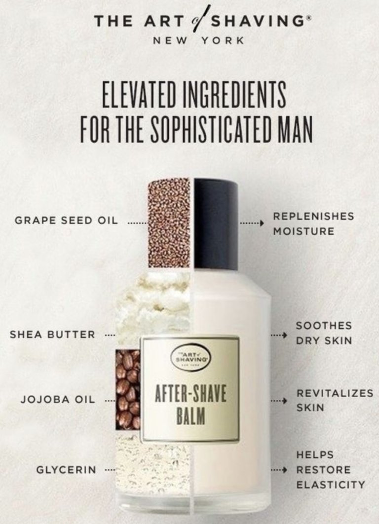 Love this image from @TheArtofShaving It lists/shows the ingredients, then translates what they do into plain English.