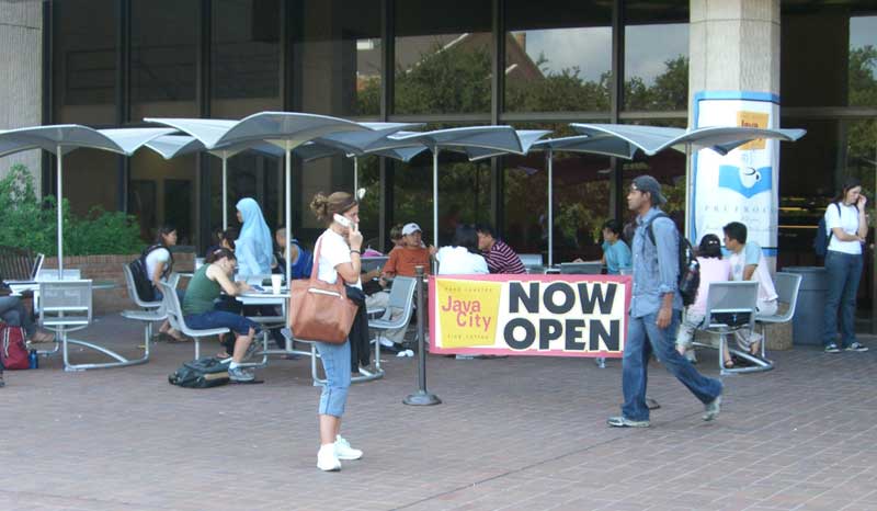 I spoke about the change in libraries too soon. After that post, the PCL library added some outside tables for the coffee shop inside. I’m curious how much money the university gets from the coffee shop.