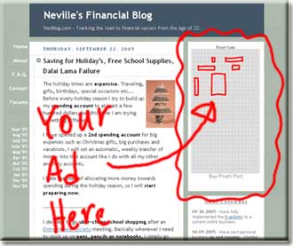 Reach a large audience on a widely-read personal finance blog which has been featured in Business Week, New York Times, Yahoo Finance, Financial Times and Wall Street Journal. No other advertisments are present on the site. Site offers draw-back appeal and high PageRanking unlike other pixel-advertising sites. New and unique way of advertising!