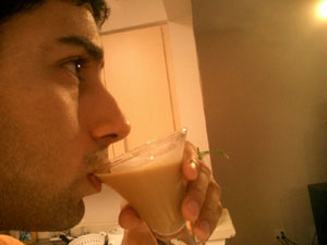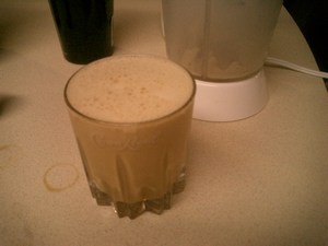 Pour 2 parts Starbucks Liquor and 1 part milk in to the ice-filled blender.