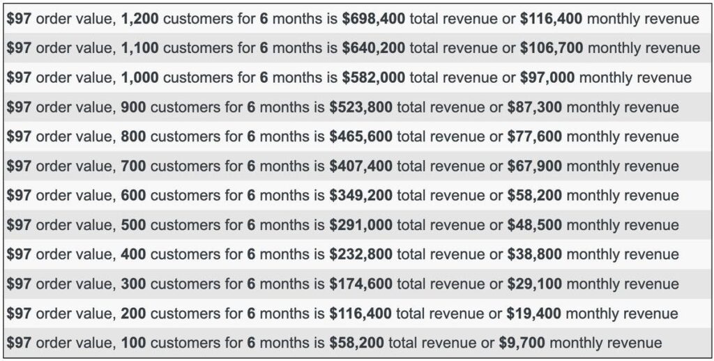 This chart shows sample revenue of a community size from 100 to 1,200: