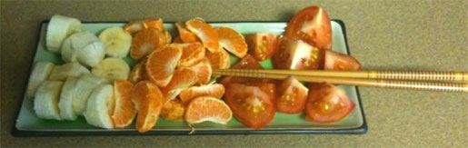 Instead of eating that one semi-gratifying Snickers that DOES NOT fill you up, you can eat TWO clementines, ONE banana and ONE tomato…they will definitely fill you up, and they look nice too: